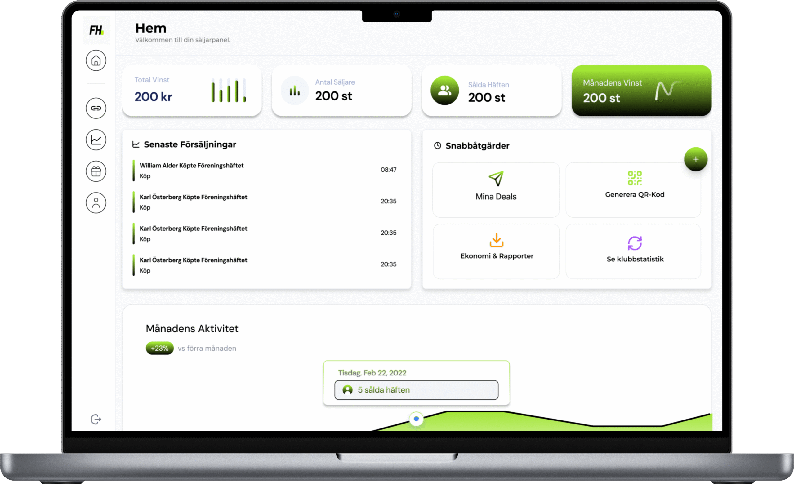 Som förening får ni tillgång till all försäljning och vinst i ett tydligt system. Följ utvecklingen månad för månad, bryt ner intäkterna och analysera prestationer över tid.
