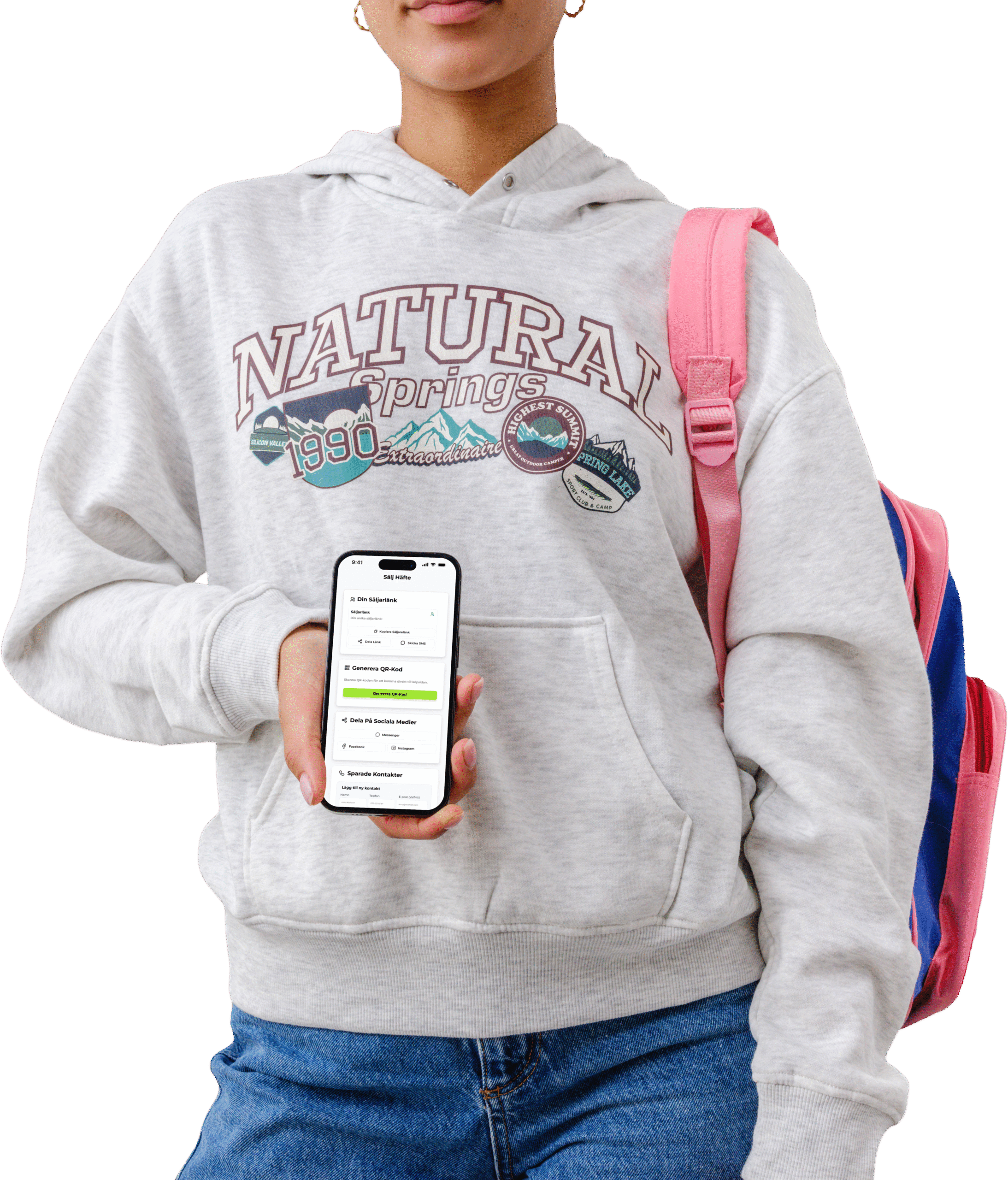 Alla elever får sin unika säljlänk och QR-kod. Det gör det enkelt att dela med vänner och familj både digitalt och fysiskt.
